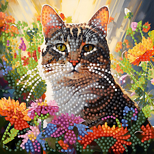 Алмазна мозаїка Кіт серед квітів на паперовій основі (18х18 см)