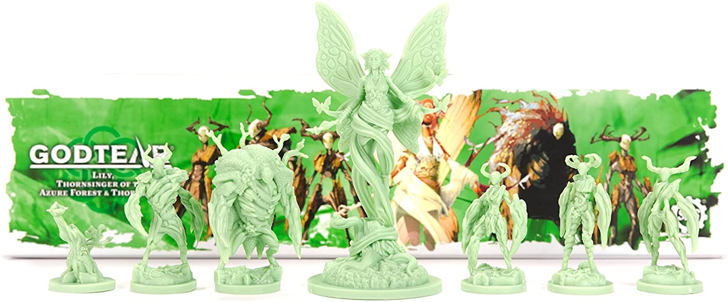 Godtear: Лілі, Терноспівець Лазурного лісу" — це унікальне розширення для стратегічної настільної гри Godtear, яке представляє нового чемпіона Шейпер класу з її унікальним набором здібностей та стилем гри. Лілі, яка старіша за самі ліси, які вона оберігає, має надприродну спритність і мудрість, а її здібності сприяють підтримці союзників та обмеженню можливостей противників. Вона використовує чарівний пил, який не тільки зміцнює друзів, але й створює пастки для ворогів, роблячи її важливою фігурою на полі битви.