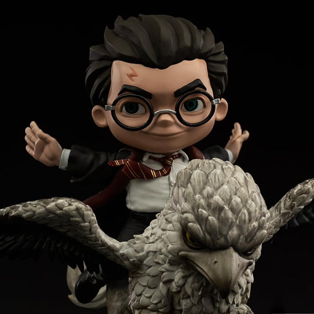 Фігурка «Гаррі Поттер і Клювокрил – MiniCo Illusion» від Iron Studios зображує чарівну сцену з фільму «Гаррі Поттер і в'язень Азкабана», де Гаррі вперше літає на гіпогрифі Клювокрилі. Цей момент символізує довіру й повагу між чарівником і фантастичною істотою. Завдяки особливому стилю MiniCo Illusion, фігурка створює ефект польоту над Гоґвортсом, додаючи магії до будь-якої колекції.