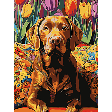 Картина за номерами Пес серед тюльпанів (30х40 см)