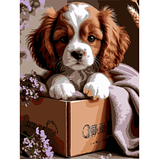 Картина за номерами Цуценя в коробці (30х40 см)