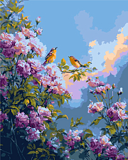 Картина по номерам Пташки серед квітучих півоній (40х50 см)
