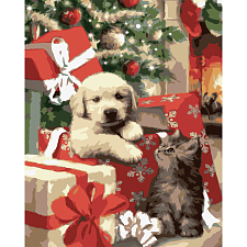Картина за номерами Песик і кошеня (40х50 см)