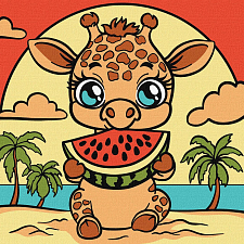 Картина по номерам Жирафа і кавун (25х25 см)