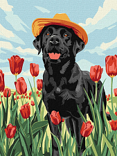 Картина по номерам Лабрадор в тюльпанах (30х40 см)