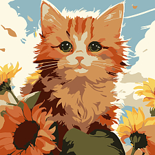 Картина за номерами Рудий кіт з соняшниками (20х20 см)