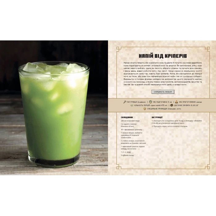 Книга также включает напитки, которые можно приготовить для дополнения любой трапезы, предоставляя полный кулинарный опыт Minecraft. Так что, если вы готовы приготовить что-то особенное, вдохновленное вашей любимой игрой, эта книга станет отличным дополнением вашей кулинарной библиотеки.