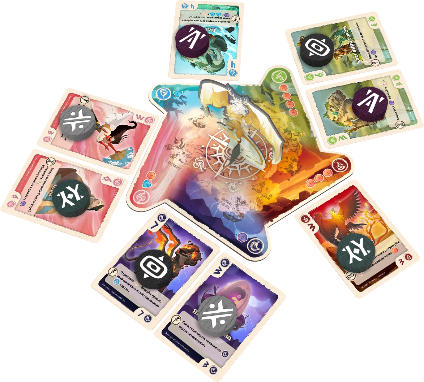 • Фаза охоты: Игроки выбирают карточки существ из общего пула, который постоянно обновляется.