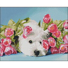 Алмазна мозаїка Собака в квітах (40х50 см)